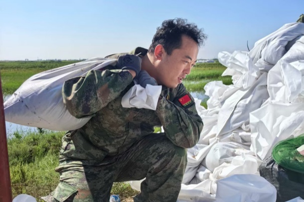 王旭是2018年申请加入到民兵连,从平日训练时扛圆木、练冲锋,到此刻在洪水里筑堤坝、护家园,他真切体会到“平时练得实,真遇事才扛得住”的分量。当看见洪水冲破了一个又一个房子,堤下老乡家的玉米只露出个黑尖,他攥着铁锹的手更紧了,“原来我们站的这几块地,这就是他们的‘家底子’。”