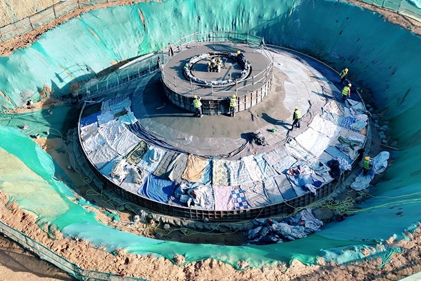 图为风机基础浇筑现场