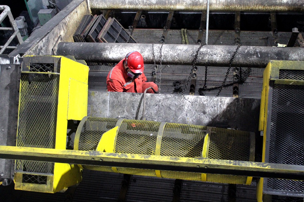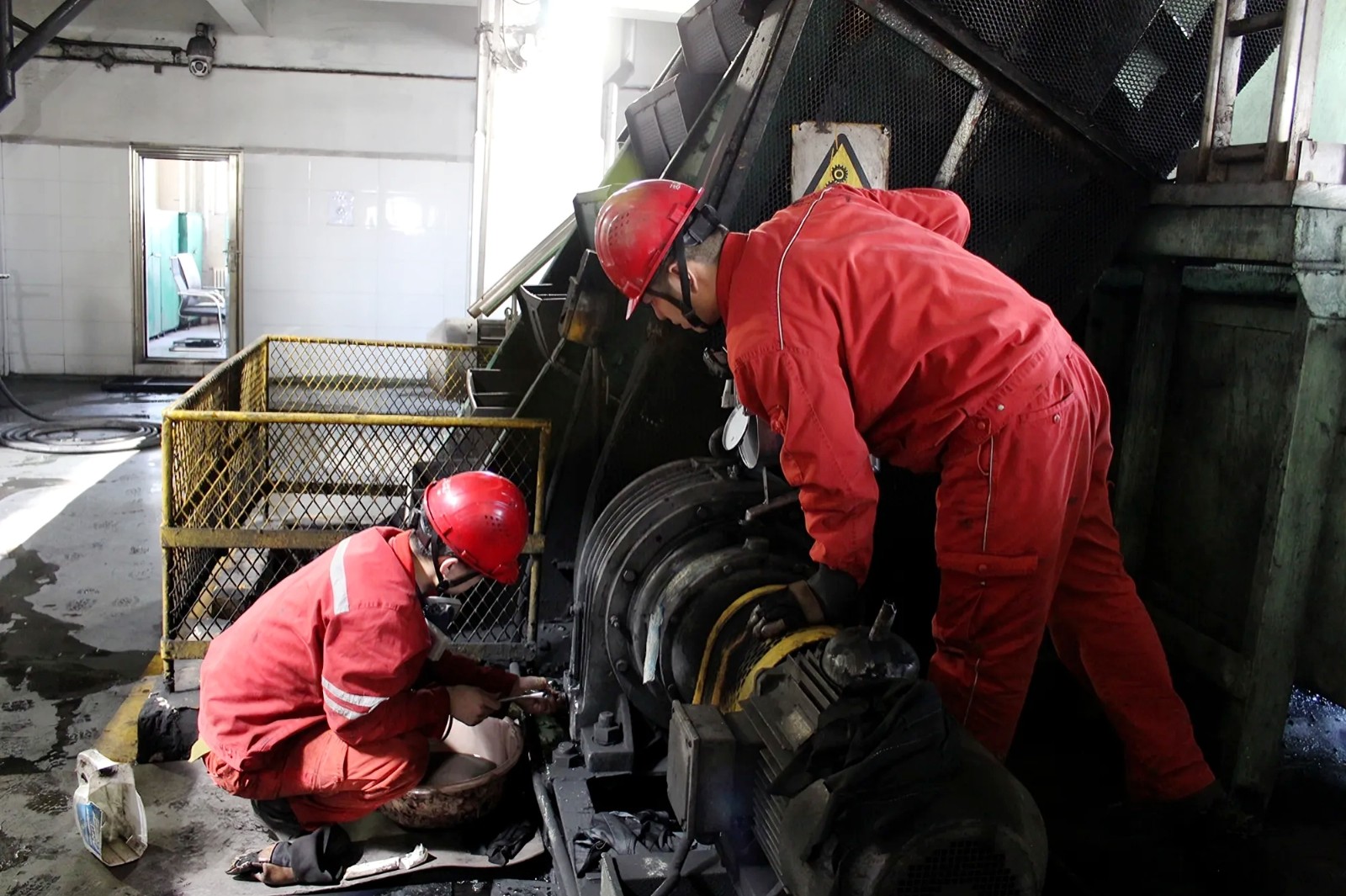 在王升指挥下,电工、操作工、起重工各就各位,钳工窦明明和工友们的身影在逼仄的空间里灵活移动。验电、闭锁、拆卸电机线、吊开上溜槽……当破碎机核心部位暴露出来时,真正的挑战才刚刚开始。积存的煤泥需要清理,沉重的旧齿板要靠导链一寸寸挪出。王升紧盯每个环节,目光扫过每一个可能的风险点。煤尘扑面,汗水浸衣,时间在扳手的敲击与导链的牵拉中悄然流逝。