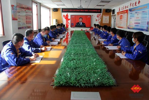 鄂尔多斯煤制油组织员工在党建活动室观看中国共产党第二十次全国代表大会开幕会盛况。