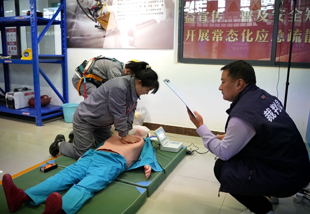 图为比赛中的神木化工员工